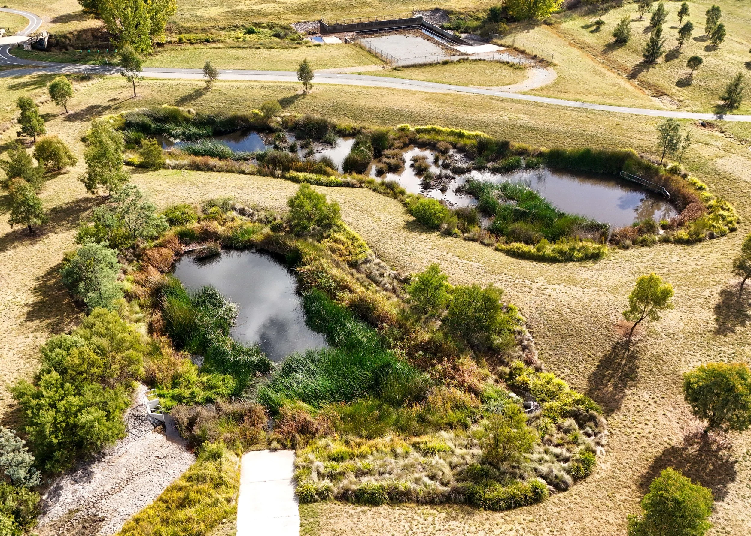 The project scope includes landscape and planting design for a range of water quality assets including ponds, wetlands, riparians, and bioretention ponds and swales. One site in Belconnen proposes the first use in the Southern Hemisphere of a ‘Subsurface Wetland’.